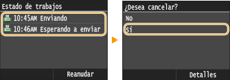 Pulse <Cancelar> en la pantalla durante la transmisión del fax