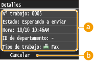 Podrá visualizar el número de documentos de envío, la configuración y otros detalles. Si únicamente desea consultar los detalles sin realizar el envío, pulse