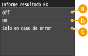 Seleccione esta opción para imprimir un Informe resultado RX solo cuando se produzca un error de recepción.