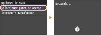 Si la conexión inalámbrica se configura seleccionando un router inalámbrico, el método de autenticación WEP se establece en <Sistema abierto> o el método de cifrado WPA/WPA2 se establece en <Auto> (AES-CCMP o TKIP). Si desea seleccionar <Clave compartida> en la autenticación WEP o <AES-CCMP> en el cifrado WPA/WPA2, debe configurar la conexión utilizando el método de entrada manual ( Configuración de la conexión especificando las opciones detalladas).