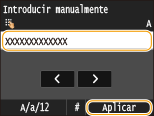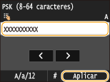 Introduzca la clave de red utilizando las teclas numéricas, y pulse <Aplicar>. Introducción de texto