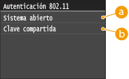 ![]() <Sistema abierto>Configura la autenticación del sistema abierto, que también se denomina "autenticación abierta."