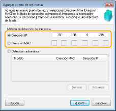 Haga clic en [Actualizar]. Si el problema persiste, haga clic en [Dirección IP] o [Dirección MAC], introduzca la dirección IP o la dirección MAC del equipo Visualización de las opciones de red y, a continuación, haga clic en [Siguiente].