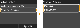 pulse <Half Duplex> o <Full Duplex>.![]() <Half Duplex>Envía y recibe datos de comunicación de forma alternativa. Seleccione cuándo se conecta el equipo a un dispositivo de red utilizando half-duplex.