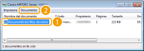 Seleccione el documento en la pantalla <Est. trabajos copia/impresión>