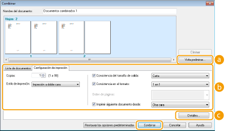 Combinación e impresión de varios documentos