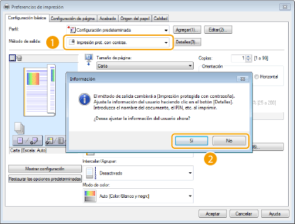 Seleccione [Impresión prot. con contras.] en [Método de salida].