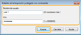 Introduzca el nombre de usuario en [Nombre de usuario] y el PIN en [PIN], y haga clic en [Aceptar].