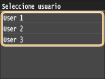 Si se conservan en la memoria documentos protegidos de dos o más usuarios, aparecerá la pantalla <Seleccione usuario> antes que la pantalla <Seleccionar archivo>. Seleccione su nombre de usuario.