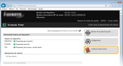 Registro de la libreta de direcciones desde la IU remota