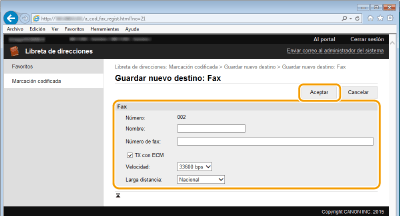 La libreta de direcciones está protegida a través de un PIN. Introduzca el [PIN] y haga clic en [Aceptar].
