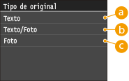 Puede seleccionar la calidad de imagen para el escaneado en función del tipo de documento, como por ejemplo documentos de solo texto, documentos con tablas y gráficos o fotos de revistas.