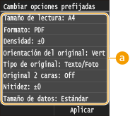 Seleccione el elemento que desee configurar y cambie el valor predeterminado.