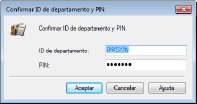 [Confirmar ID de departamento/PIN al imprimir]/[Confirmar ID de departamento/PIN al enviar fax]