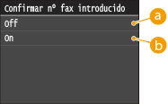 Puede configurar el equipo para que solicite a los usuarios el número de fax dos veces cuando se introduzca utilizando las teclas numéricas. De este modo, puede reducir el riesgo de envío de faxes a números incorrectos debido a errores en la información.