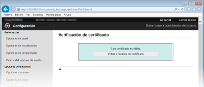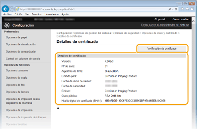 Los detalles del certificado pueden visualizarse en esta pantalla.