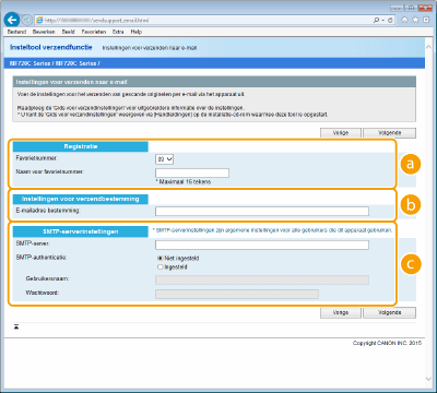 U kunt meer gedetailleerde instellingen opgeven door de UI op afstand te gebruiken in plaats van de Instel-tool Zendfunctie (Communicatie-instellingen voor E-mail/I-Fax configureren). De Instel-tool Zendfunctie is handig voor gebruikers die de configuratie zo eenvoudig mogelijk willen uitvoeren.