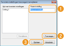 Het scherm [Favoriete instellingen toevoegen/verwijderen] wordt weergegeven.