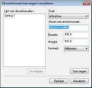 Als u [Toevoegen/verwijderen] selecteert, kunt u nieuwe uitvoerformaatinstellingen toevoegen en de toegevoegde formaten verwijderen.