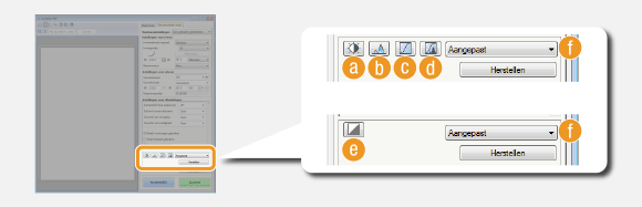 om te schakelen tussen de liggende of staande afdrukstand. Deze knop is niet beschikbaar wanneer [Aanpasbaar] is geselecteerd.