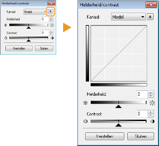 Als u alleen de helderheid, het contrast, het histogram, de kleurtint of de drempelinstelling wilt opslaan, volgt u de onderstaande procedure.