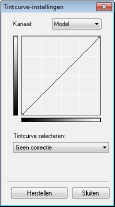 De tintcurve is een gebogen lijn die de niveaus van helderheid en contrast van de afbeelding aangeeft vóór en na correctie. Selecteer een opgeslagen tintcurve om de helderheid en het contrast van de afbeelding aan te passen.
