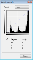 De resultaten van alle aanpassingen aan de helderheid, het contrast (  ), het histogram (  ) en de tintcurve-instellingen (  ) worden in een tintcurve weergegeven als numerieke waarden. Voer een laatste controle van de kleurinstellingen uit.