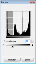 * De drempelwaarde is de grens die bepaalt of een kleur wordt weergegeven als zwart of als wit. Kleuren onder een bepaald dichtheidsniveau worden als wit weergegeven en de kleuren daarboven als zwart.