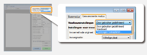 Klik op [Voorkeuren] om verschillende instellingen te configureren, zoals de bediening tijdens het scannen.