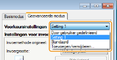 Geef een voorbeeldweergave weer en selecteer de opgeslagen instelling in de vervolgkeuzelijst.
