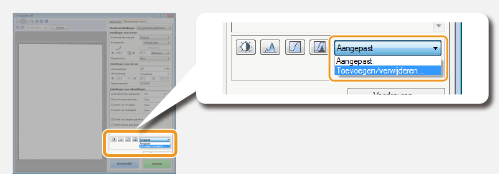 [Toevoegen/verwijderen] is beschikbaar wanneer de voorbeeldafbeelding wordt weergegeven.