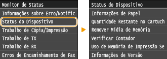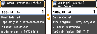 <Configs. de Papel>Este botão também é utilizado para especificar o tamanho e o tipo de papel colocado na gaveta de papel e na ranhura de alimentação manual. Especificar o tamanho e o tipo de papel