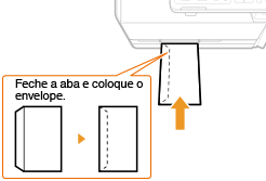 Coloque os envelopes de modo a que a extremidade com a aba fique virada para o lado esquerdo, conforme mostrado na imagem.