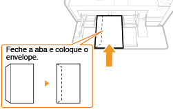 Esta secção descreve como colocar envelopes na orientação pretendida e também os procedimentos que é necessário efetuar antes de colocar envelopes. Para ver uma descrição do procedimento geral de colocação de envelopes na gaveta de papel ou na ranhura de alimentação manual, consulte Colocar papel na gaveta de papel ou Colocar papel na ranhura de alimentação manual.