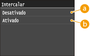 Quando pretender preparar várias cópias de documentos com várias páginas, defina <Intercalar> como <Ativado> para ordenar as cópias pela ordem sequencial das páginas. Esta função é útil para preparar material escrito para distribuição em reuniões ou apresentações.