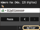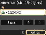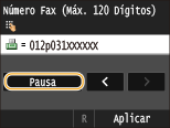 Toque em <Pausa> para inserir uma pausa no final do número de fax, conforme necessário.