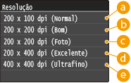 Pode selecionar a resolução adequada ao tipo de documento. Quanto maior for a resolução, mais nítida ficará a imagem, embora o envio demore mais tempo.