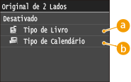 <Fax>  <Original de 2 Lados> Selecione <Tipo de Livro> ou <Tipo de Calendário>