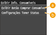 Se não quer utilizar o Toner Status, selecione <Desativado>. Para impedir a apresentação, em Toner Status, de um botão de acesso a sites para compra de cartridges de toner, selecione <Ativado> e, em seguida, <Desativado>.