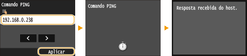 <Máscara de Sub-rede> <Endereço de Gateway>.Introduza cada definição utilizando as teclas numéricas e toque em <Aplicar>.