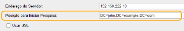 Especifique o nó da árvore de informação de diretórios (DIT) a partir da qual pretende iniciar a procura. Se a caixa de texto ficar em branco, a máquina inicia a procura a partir de um nó arbitrário selecionado automaticamente.