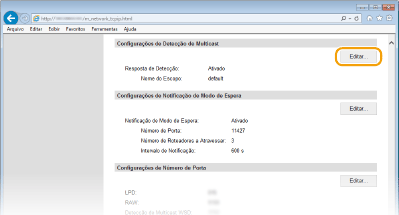 Clique em [Editar] em [Configurações de Detecção de Multicast].
