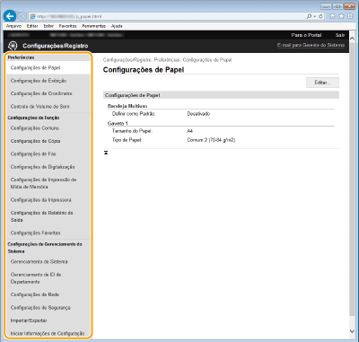 Para poder alterar certas definições, é necessário iniciar sessão no modo de administrador de sistema.