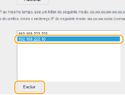 Apagar um endereço IP das exceções Selecione um endereço IP e clique em [Excluir].