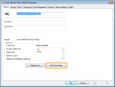 Επιλέξτε [Print Test Page] (Εκτύπωση δοκιμαστικής σελίδας) στην καρτέλα [General] (Γενικά).
