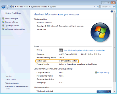 Εμφανίζεται το [32-bit Operating System] (Λειτουργικό σύστημα 32-bit).