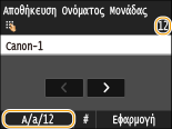 Πατήστε επανειλημμένα το <A/a/12> έως ότου επιλεχθεί το <A>.