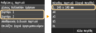 Κατά την επιλογή μεγέθους χαρτιού για το συρτάρι χαρτιού
