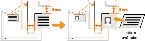Μπορείτε να χρησιμοποιήσετε την επιλογή <ΑντιγραφήΤαυτότητας> για να αντιγράψετε την μπροστινή και την πίσω πλευρά μιας ταυτότητας στην ίδια πλευρά μιας σελίδας. Η λειτουργία αυτή είναι χρήσιμη κατά την αντιγραφή διπλώματος οδήγησης ή ταυτότητας.