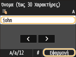 Εάν πατήσετε <A/a/12>, πραγματοποιείται εναλλαγή μεταξύ των λειτουργιών εισαγωγής (εκτός από την αναζήτηση με βάση τον αριθμό φαξ).